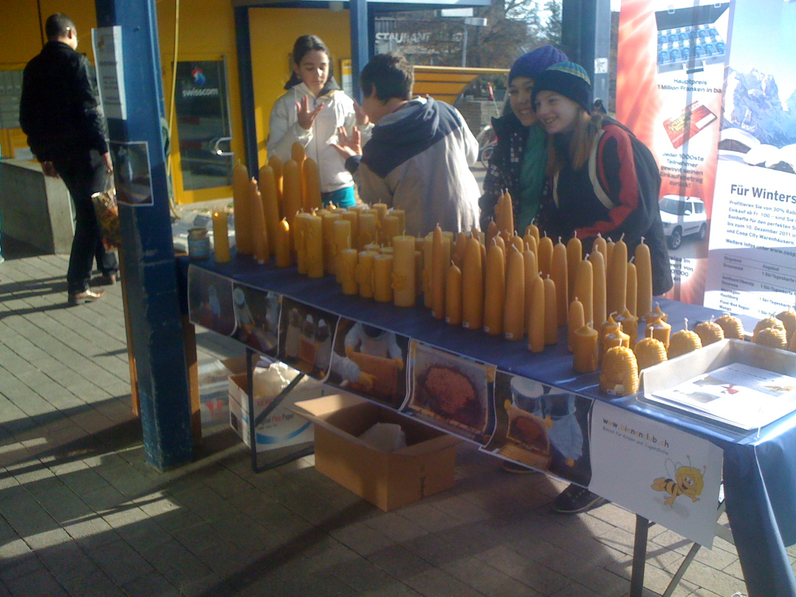 Die Jungimkerinnen vom Bienenclub Uettligen haben Kerzen gezogen, gerollt und gegossen. Am Samstag 26. November haben wir vor dem Coop in Uettligen Kerzen in allen Grössen und Formen verkauft - alle handgefertigt aus 100% Bienenwachs. Wer den Märit verpasst hat, kann noch Kerzen kaufen in der Metzgerei Aeschlimann und im Altersheim Hofmatt.