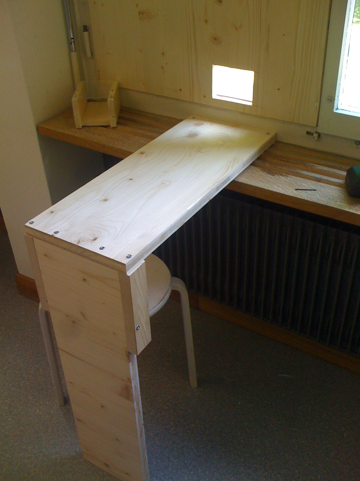 Ein festgeschraubter Ständer für den Bienenkasten.